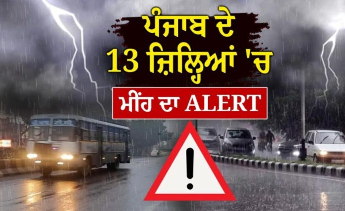 ਪੰਜਾਬ ਵਿੱਚ ਮੌਸਮੀ ਤਬਦੀਲੀ: 13 ਜ਼ਿਲ੍ਹਿਆਂ ਲਈ ਆਰੈਂਜ ਅਲਰਟ, ਭਾਰੀ ਮੀਂਹ ਤੇ ਤੇਜ਼ ਹਵਾਵਾਂ ਦੀ ਚੇਤਾਵਨੀ…