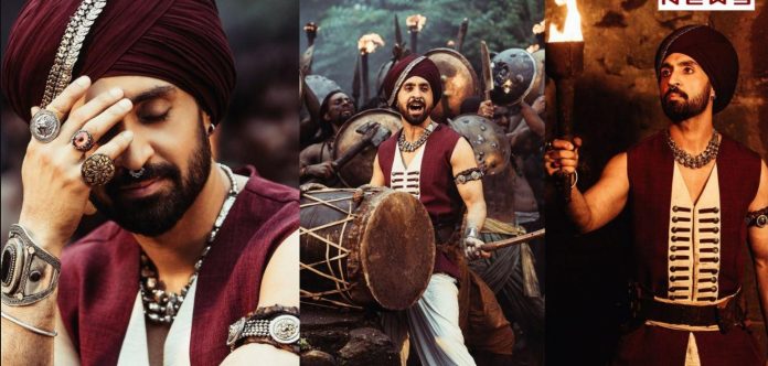 ਦਿਲਜੀਤ ਨੇ ਫਿਲਮ ਵਿੱਚ “ਬਾਗ਼ੀ” ਨਾਮਕ ਗੀਤ ਵਿੱਚ ਆਪਣਾ ਆਗਮਨ ਕਰਦਿਆਂ ਇੱਕ ਵਿਲੱਖਣ ਅਤੇ ਦਿੱਖਣਯੋਗ ਲੁੱਕ ਪੇਸ਼ ਕੀਤਾ। ਗਾਇਕ ਨੇ ਆਪਣੇ ਸੋਸ਼ਲ ਮੀਡੀਆ ਪਲੇਟਫਾਰਮਾਂ ’ਤੇ ਗਾਣੇ ਦੀਆਂ ਕਈ ਫੋਟੋਆਂ ਸਾਂਝੀਆਂ ਕੀਤੀਆਂ, ਜਿਨ੍ਹਾਂ ਵਿੱਚ ਉਸਦਾ ਲੁੱਕ ਹਰ ਕਿਸੇ ਦੇ ਮਨ ਨੂੰ ਖਿੱਚ ਰਿਹਾ ਹੈ। ਗਾਣੇ ਵਿੱਚ ਦਿਲਜੀਤ ਨੇ ਕਲਾਸਿਕ ਮੈਰੂਨ ਪਹਿਰਾਵਾ ਪਾਇਆ ਸੀ, ਜਿਸ ਵਿੱਚ ਮੇਲ ਖਾਂਦੀ ਪੱਗ ਅਤੇ ਨੱਕ ‘ਤੇ ਸੈਪਟਮ ਉਸਦੇ ਲੁੱਕ ਨੂੰ ਹੋਰ ਖੂਬਸੂਰਤ ਬਣਾਉਂਦੇ ਸਨ।